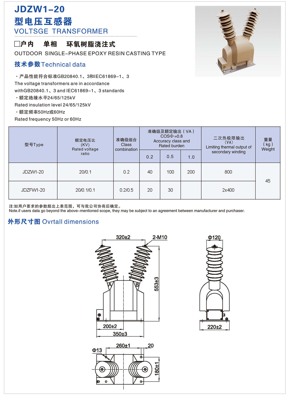 JDZW1-20 型电压互感器