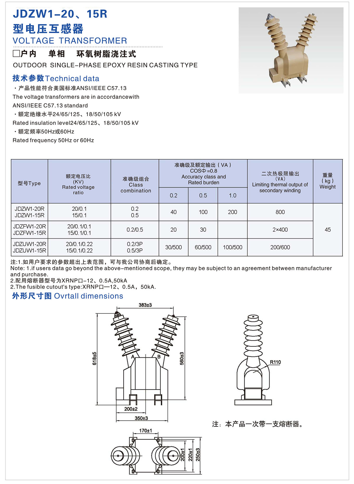 JDZW1-20、15R 型电压互感器