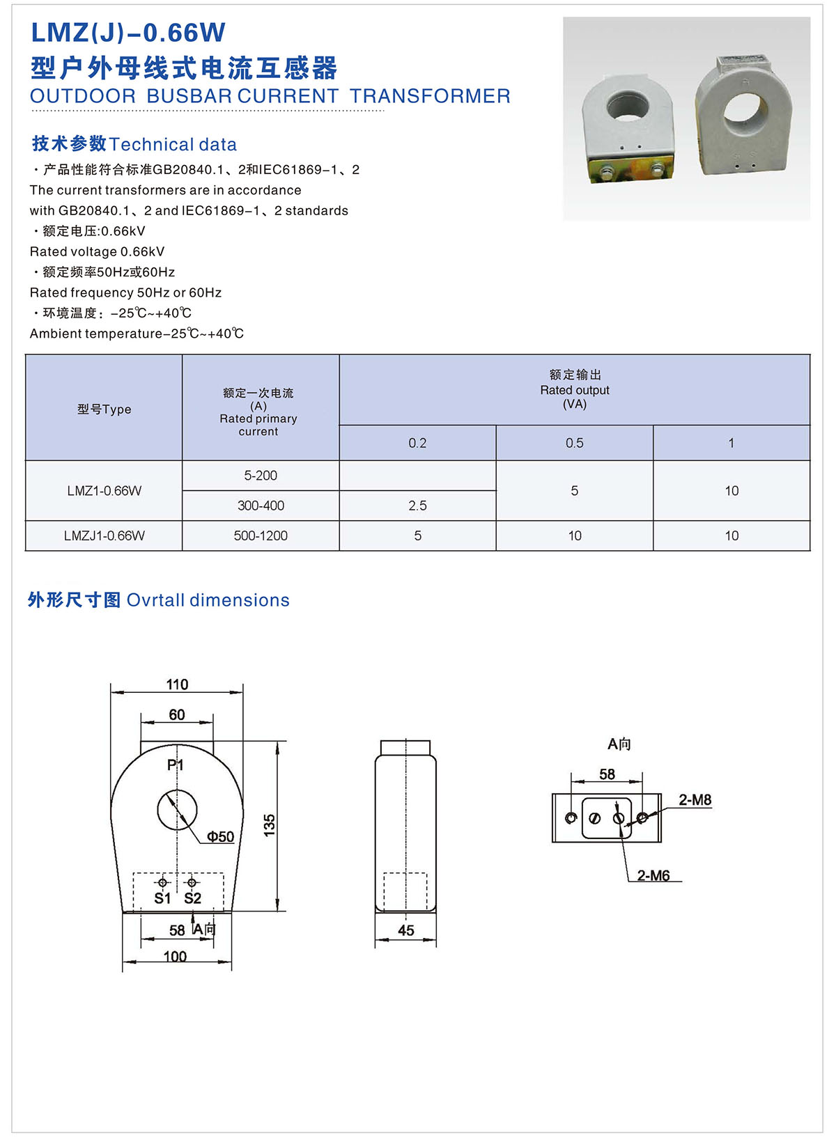 LMZ(J)1-0.66W 型户外母线式电流互感器