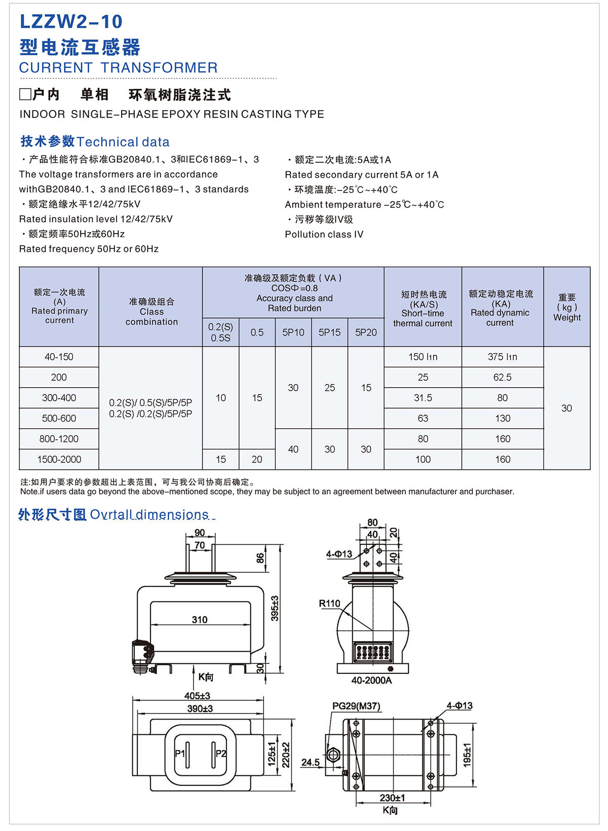 LZZW2-10 型电流互感器